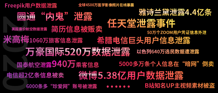2020年,新冠疫情肆虐全球,催化各行業(yè)加速數(shù)字化轉(zhuǎn)型,數(shù)據(jù)的價值在進一步凸顯,數(shù)據(jù)的泄露也在持續(xù)高頻發(fā)生,企業(yè)面臨資產(chǎn)與聲譽的重大損失,公眾深受隱私曝光與騷擾詐騙的困擾。