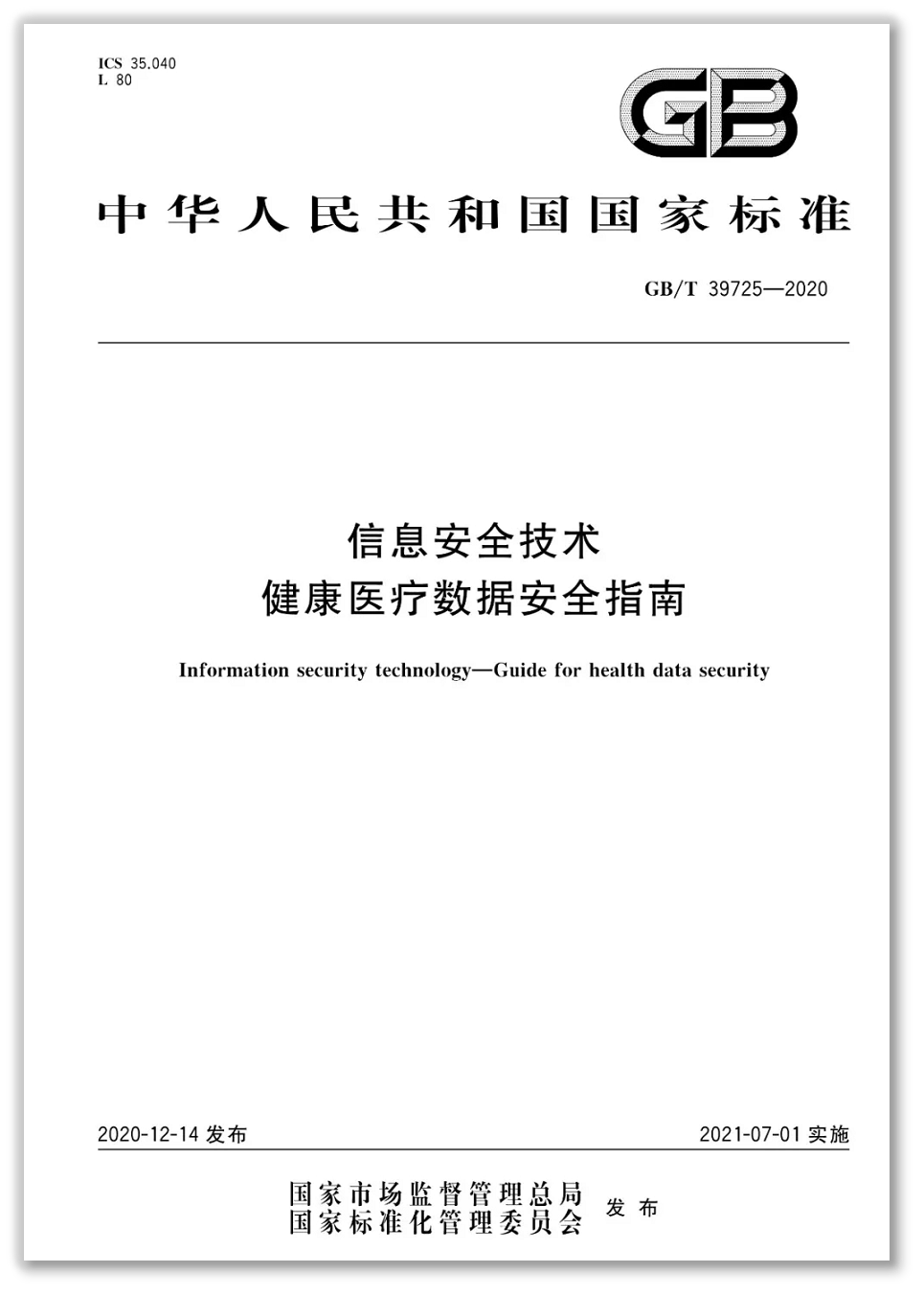 2020年年底,信安標委第28號國家標準公告,正式發(fā)布了《信息安全技術(shù)健康醫(yī)療數(shù)據(jù)安全指南》(GB/T 39725-2020,以下簡稱“安全指南”),自2021年7月1日期實施。