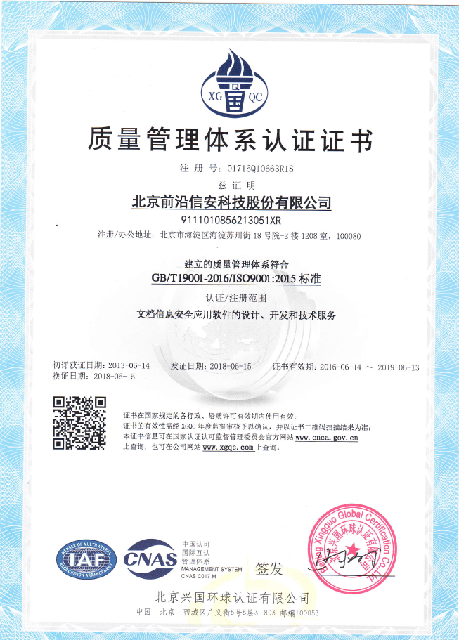 北京前沿信安科技股份有限公司營業執照(五證合一)